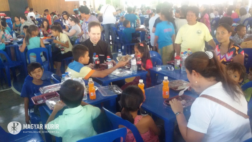 A mise koncelebránsait, a szerzeteseket a liturgia után külön-külön kísérték el egy-egy asztalhoz, hogy együtt étkezzenek a gyermekekkel. A beszélgetésekből megannyi történet bontakozott ki. Egy dolog hamar megmutatkozott: a helyi emberek szegénységükben is jólelkűek, nyitottak, mosolyognak, készek a „beszélgetésre”, még ha ez közös nyelv híján csak egy mosolyt vagy kézmozdulatot jelent.