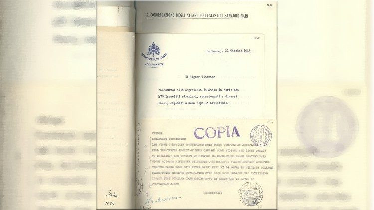 Az országok szerint besorolt dokumentumok mellett megtalálható a „Zsidók” címszó is. Ez a levéltári sorozat 170 dossziéból áll és közel négyezer név történetét tartalmazza. Nagyrészt zsidó származású katolikusoktól érkezett segítségkérő levelekről van szó, de nem hiányoznak a zsidó nevek sem. Olyan kiemelkedő személyiségekre vonatkozóan is találhatók anyagok, mint például Paul Oscar Kristeller világhírű filozófus, vagy Tullio Liebman, aki a háború után vált nemzetközi hírű jogászprofesszorrá. Ő XII. Piusz közvetlen munkatársainak köszönhetően tudott Latin-Amerikába menekülni az üldöztetés elől.