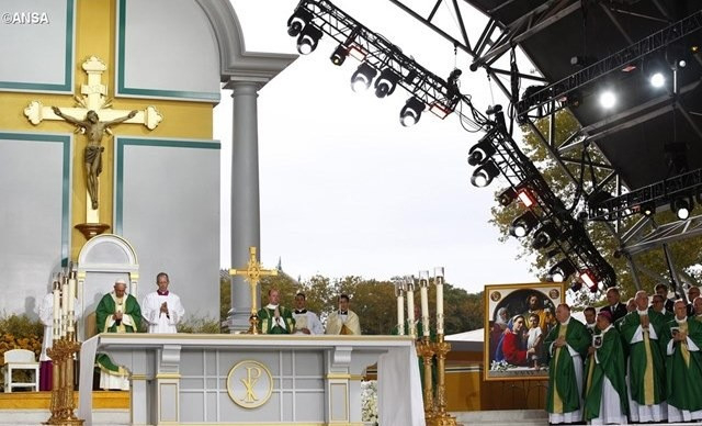 Isten adja meg mindnyájunknak, hogy az evangélium prófétái legyünk, a család evangéliumáé, a család szeretetének evangéliumáé, az Úr tanítványaiként, és adja meg nekünk azt a kegyelmet, hogy méltók legyünk arra a szívbeli tisztaságra, amely nem botránkozik meg az evangéliumon! Úgy legyen!