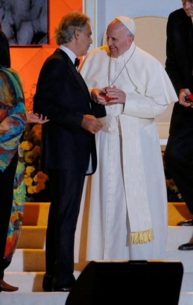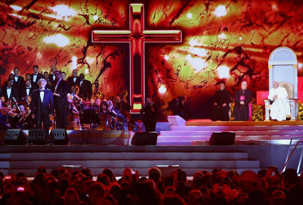 Köszönetet mondok azoknak, akik tanúságot tettek. Köszönetet mondok azoknak is, akik megörvendeztettek minket a művészettel, a szépséggel, amely olyan út, amelyen Istenhez érkezünk. A szépség Istenhez vezet minket. Az igazi tanúságtétel Istenhez vezet, mert Isten igazság is. Isten szépség és igazság. Ha valaki szolgálatként tesz tanúságot, az jó, jóvá tesz minket, mert Isten jóság. [A jó tanúságtétel] Istenhez vezet minket. Minden, ami jó, igaz és szép, Istenhez vezet minket. Mert Isten jó, Isten szép, Isten igazság.