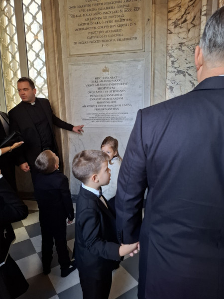 A szentmisét követően felkeresték a bazilikában a Szent István király alapította egykori magyar zarándokház helyén álló emléktáblát, majd az Orbán család tagjai Semjén Zsolt miniszterelnök-helyettes, Habsburg-Lotharingiai Eduárd szentszéki nagykövet és Törő András atya, a Pápai Magyar Intézet rektora kíséretében áthaladtak a szent kapun.