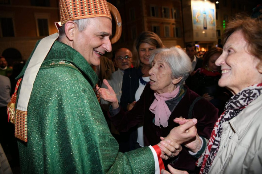 Az utcára kilépő, az emberek között élő Egyház jelképe lehetne a bazilika előtti téren összegyűlt, ünneplő emberek látványa. Ott voltak mindazok, akik Zuppi bíboros életútjának társai voltak: testvérei a Sant’Egidio közösségből, a városnegyed szegényei és távolabbról érkező szegények, a fogyatékkal élők, akik az Amici (Barátok) nevű mozgalom tagjai, akik mindig nagy szeretettel vették körül Matteo atyát. Ott voltak, akik vele dolgoztak, amikor a Santa Maria in Trastevere plébánosa volt, és a bolognai hívek, akik közül ezerötszázan vonattal kísérték Rómáig énekelve, ünnepelve.