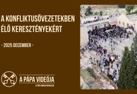 december 12. | 10:02Leó pápa decemberi imaszándéka a konfliktusövezetekben élő keresztényekértA pápa decemberi videójában, amelyet magyar nyelven december 11-én tettek közzé, arra hív, imádkozzunk, hogy a háború vagy konfliktus sújtotta területeken élő keresztények, különösen a Közel-Keleten, a béke, a kiengesztelődés és a remény magvetői legyenek.