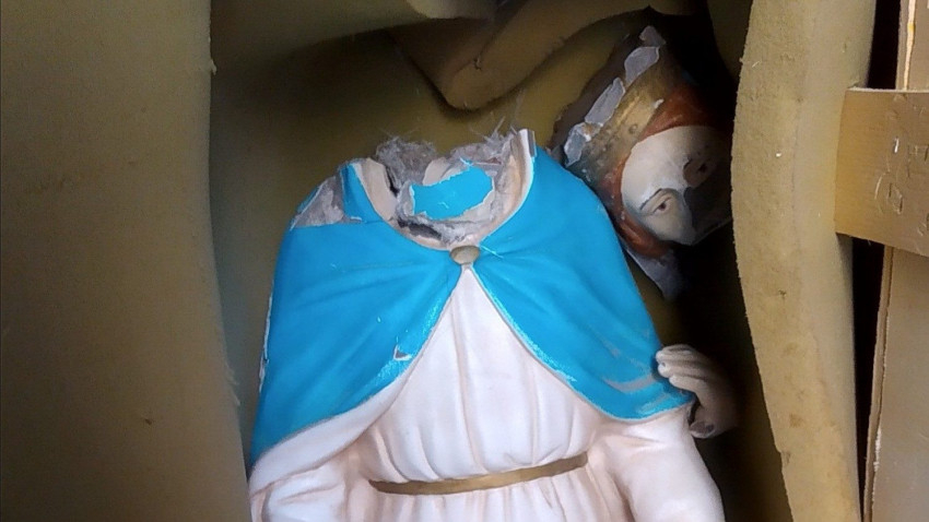 A Szentatya iraki látogatása alkalmával Erbílben, március 7-én a stadionban bemutatott szentmisén is ott állt egy hasonló módon megcsonkított, sebeket hordozó Mária-szobor, amelynek ugyancsak az Iszlám Állam terrorszervezet fegyveresei vágták le a fejét és a kezét.
