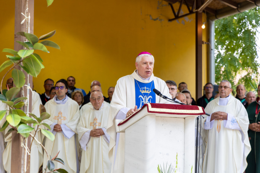 A püspök szentbeszédében hangsúlyozta, hogy „a remény zarándokai vagyunk. Annak a reménynek, amely nem csal meg, mert alapja nem a mi megoldásainkban és eredményeinkben van, hanem Istenben. Szent II. János Pál pápa egyszer így fogalmazott: »Ha Jézus a remény, akkor Mária a remény anyja.« Ma Máriára, a remény anyjára tekintünk, mert ő nyújtja nekünk Jézus Krisztust, a mi reményünket. Tőle akarjuk megtanulni, hogyan ne veszítsük el a reményt még a nagypéntek sötétségében, a kereszt alatt sem. Tőle akarjuk megtanulni, miként állhatunk ellen a világ nagyságfelfogása csábításának, és hogyan fogadhatjuk el Isten működésének logikáját, aki a kicsit és az egyszerűt választja. Követni akarjuk az ő állhatatosságát a reményben.”