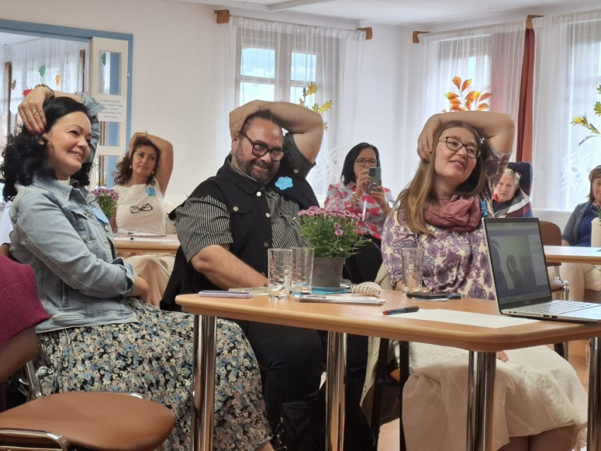 A Diakónia képviseletében érkezett Dénes Kinga, aki többféle foglalkozás mellett az erdővidéki Baróton szervezi az Alzheimer Cafékat tematikus beszélgetésekkel, ismeretterjesztő előadásokkal és filmvetítésekkel. Két filmet is javasol megnézésre, az Egyre távolabbot és a Sors kezét. Munkatársa, Roth Enikő Sepsiszentgyörgyön szervez támogató és tájékoztató programokat. „Az egyik nagy célunk az kell, hogy legyen, hogy ezt a munkát ne hagyjuk abba. Ebben a témában a legtöbbet önmagunkról tudunk megtanulni, és azt, hogyan viszonyuljunk a pillanatonként változó helyzethez” – mutatott rá, majd pár feszültségoldó gyakorlatot is mutatott a jelenlévőknek.