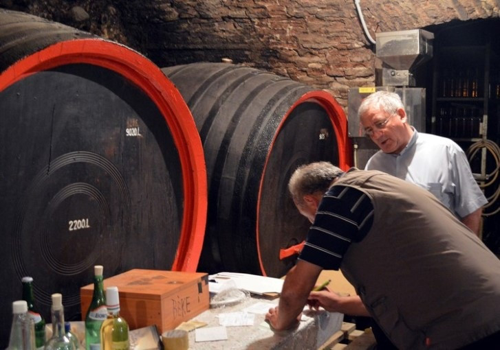 „Nem kaptam erről semmi papírt – mondja Tóth Csaba –, de az elődöm, Kellner Ferenc bácsi mesélte, hogy a régi vincellérek úgy tartották, hallották, hogy az 1541-es építésű várat megelőzően, azon a területen már pince volt, így bár papír nincs róla, de feltételezhető, hogy a püspökség épített egy pincét, ahol a bort tárolta, és csak ez után épült a vár és a palota is. Látszik is, hogy a pince régebbi, mint a palota. A pince kilóg a ház alól, ilyet általában nem csináltak. Nagyon régiek a pincék, ugyanakkor nagyon régiek a hordóink is a pincében. Több mint 70 százaléka, amikor én 1974-ben átvettem, már akkor régi hordó volt, tehát javarészt száz éven felüli, cserefa hordókban tartjuk és érleljük a bort.”