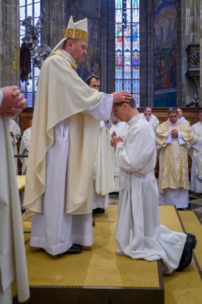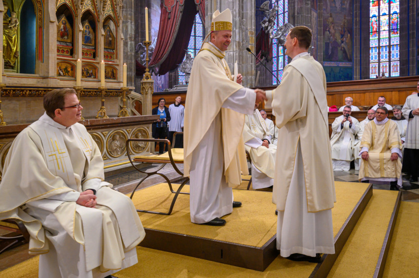 A hároméves formáció végeztével közös lelkigyakorlaton készültek a jelöltek arra, hogy a papi rend legalsó fokozatára szenteljék őket. A szombati szentmise előtt a szentelésre készülők a cseh egyház szívében, a Szent Vencel-kápolnában a szentelő püspök, Zdenek Wasserbauer előtt tették le esküiket, melyeket az oltáron írtak alá.