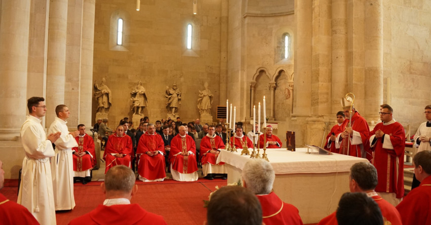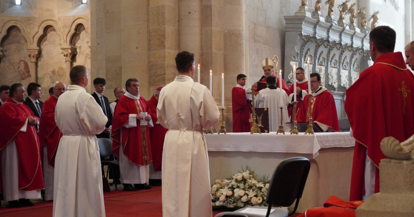 Prédikációjában Kovács Gergely érsek az Apostolok cselekedeteiből elhangzott szakaszt idézte, amely szerint „hét jó hírben álló, Lélekkel eltelt, bölcs férfit” választottak ki az apostolok, akiket kézrátétellel felszenteltek az Egyház karitatív ügyeinek intézésére. E példára hivatkozva mutatott rá a főpásztor a diakónusi szolgálat lényegére, amely ma is az Egyház szolgálatára, a közösség javára történik.
