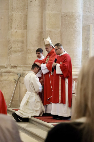 A szentelési szentmisében az evangélium felolvasása után András István, a gyulafehérvári szeminárium (Seminarium Incarnatae Sapientiae) rektora szólította a jelölteket, és arra kérte az érseket, hogy szentelje fel őket a szerpapi (diakónusi) szolgálatra.