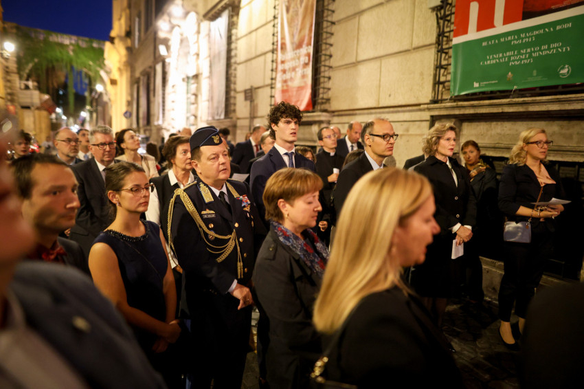 Az ünnepi eseményen jelen volt Paul Richard Gallagher érsek, a Szentszék államokkal és nemzetközi szervezetekkel fenntartott kapcsolatokért felelős titkára (világi értelemben véve a Vatikán külügyminisztere); Robert Sarah bíboros; Udvardy György veszprémi érsek, a Magyar Katolikus Püspöki Konferencia (MKPK) alelnöke; Németh Gábor, az MKPK titkára; a Pápai Magyar Intézet közössége, a Szentszékhez és a Szuverén Máltai Lovagrendhez akkreditált diplomáciai testület tagjai, a szentszéki magyar nagykövetség és a Római Magyar Akadémia munkatársai, valamint magyar zarándokok, akik együtt imádkoztak a magyar népért és a világ békéjéért.