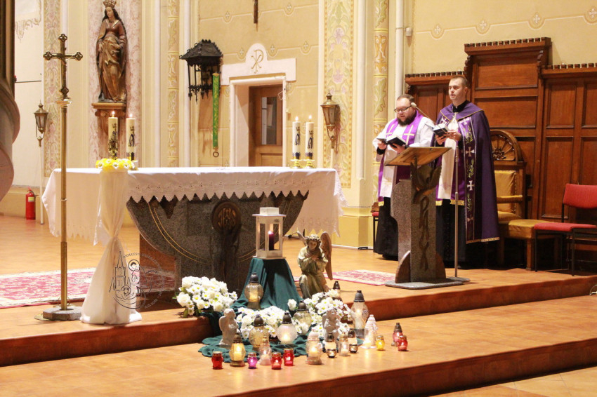 A szentmise előtt Fizer Jenő atya és Gerzánics Szergej püspöki irodaigazgató a megholtakért végeztek zsolozsmát, miközben a gyülekező hívek égő mécseseket helyeztek el az oltárnál. Ezalatt a gyóntatószékben Pohorelcev Irenej OP gyóntatott.