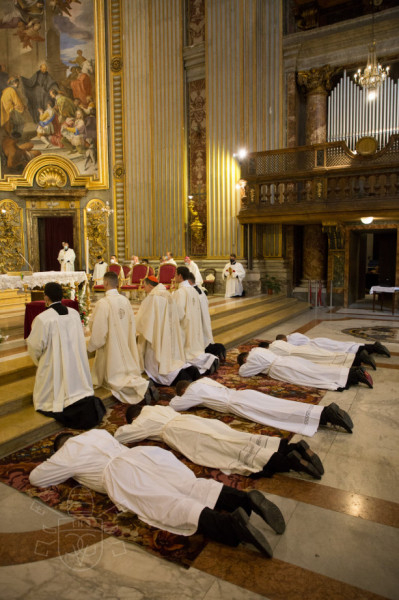 A svájci származású Kurt Koch bíborost, a Keresztény Egység Előmozdítása Pápai Tanácsának elnökét kérték fel idén a Germanicum et Hungaricum pap- és diakónusszentelési szentmiséjének bemutatására, amelyet német nyelven tartottak. Az olvasmányok és az énekek a kollégium diákjainak nyelvén, így most magyarul, horvátul és németül hangzottak el. Fabian Bruns a limburgi, Johannes Bruno Frost pedig a kölni egyházmegye diakónusaként nyerte el a papszentelés kegyelmét. Velük együtt lépett a papi rend diakónus fokozatába további négy növendék: Fülöp Tamás a győri , Solymos András a veszprémi, Tóth László Gábor a debrecen-nyíregyházi, valamint a horvát Ivo Markić a dubrovniki egyházmegyéből.