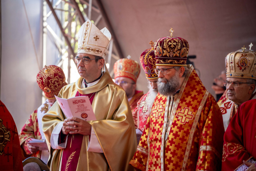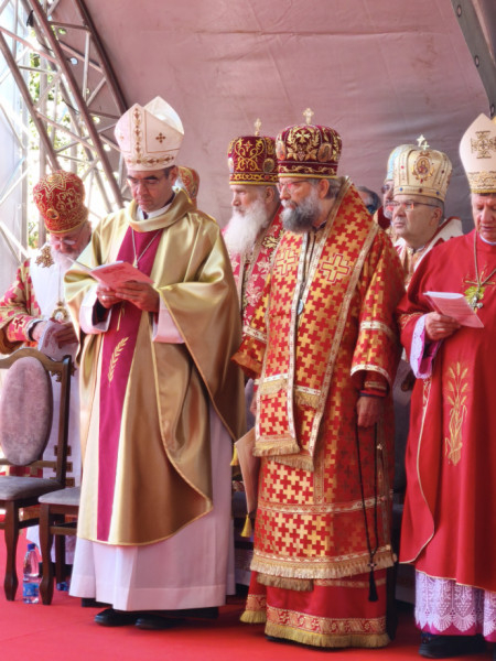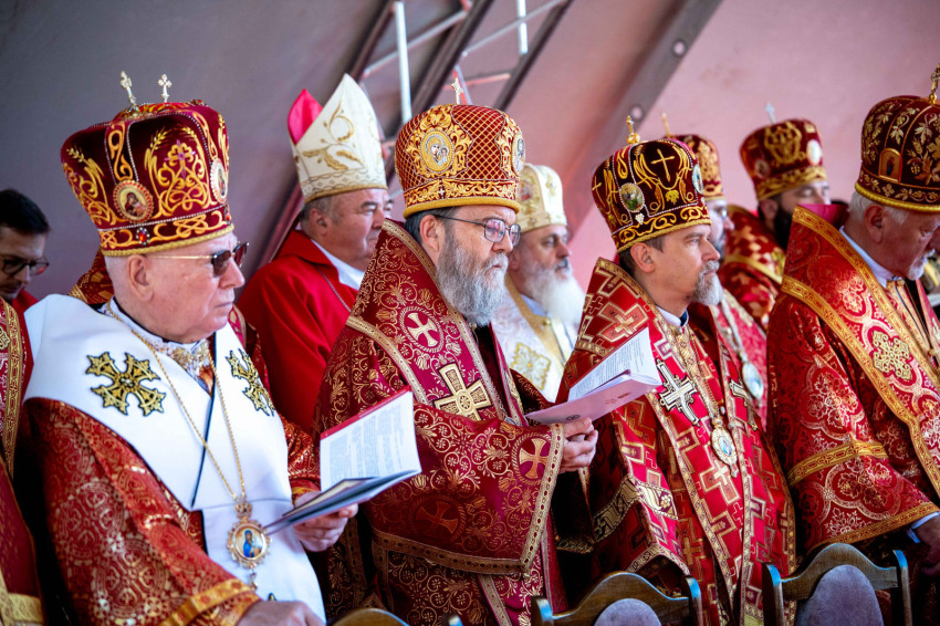Az ünnepi Szent Liturgián, melyen közel negyven püspök, több száz pap és több ezer ember vett részt, három kórus teljesített szolgálatot.