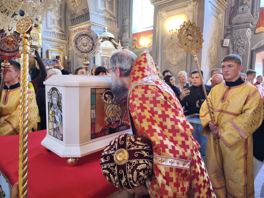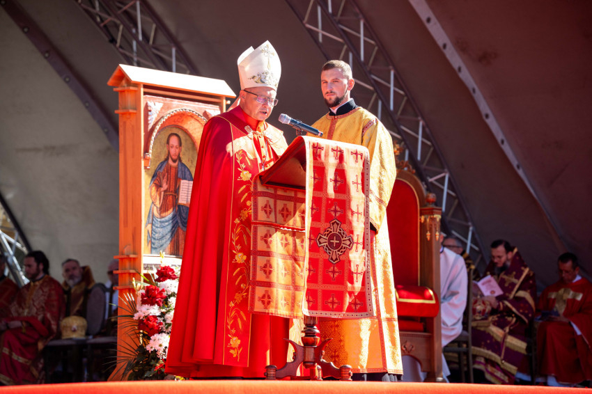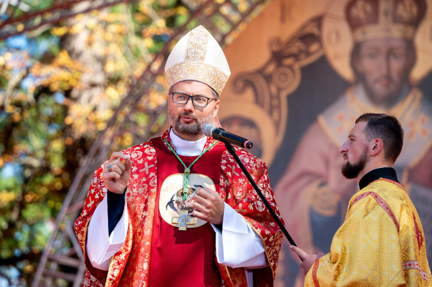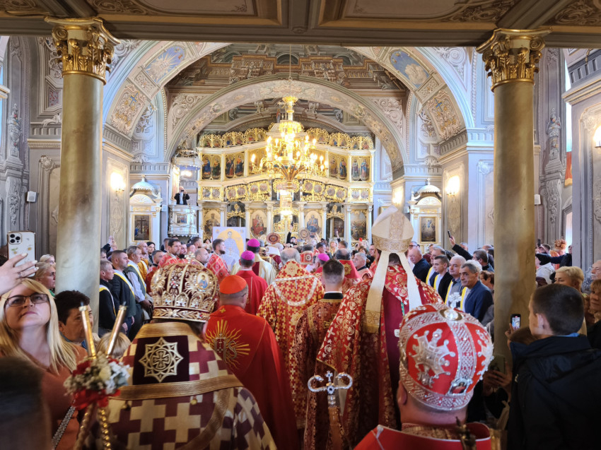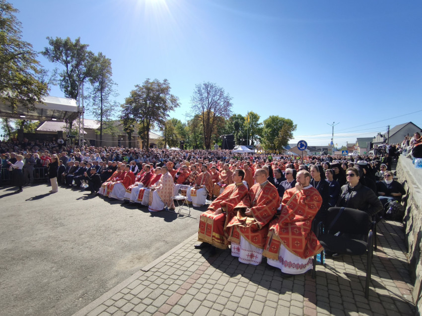 A Szent Liturgia után Teodor Macapula püspök egyenként köszöntötte a vendég püspököket. Rövid beszédet mondott Visvaldas Kulbokas apostoli nuncius, Szvjatoszlav Sevcsuk kijev-halicsi nagyérsek, Robert Pipta, az amerikai parmai egyházmegye püspöke, Mieczysław Mokrzycki lembergi érsek, Vitalij Szkomarovszkij lucki püspök, az Ukrajnai Római Katolikus Püspöki Konferencia elnöke és Kocsis Fülöp érsek-metropolita.