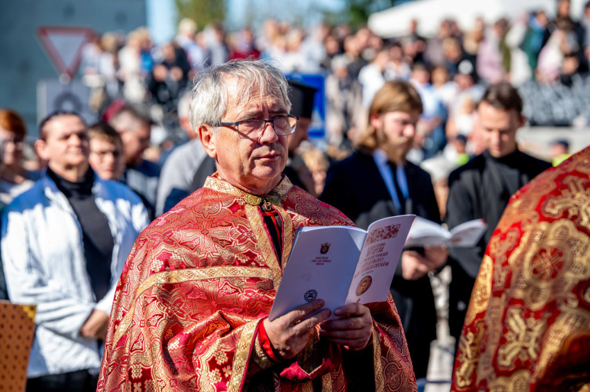 Ezután ünnepélyesen az oltárhoz emelték a vértanú földi maradványait őrző díszes ládát és ikonját. Az ereklyetartót tábori lelkészek, az ikont újmisés papok vitték. Közben a kórus boldog Péter vértanú tropárját és kontákját énekelte.