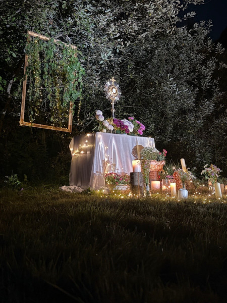 A lelki feltöltődést „randevúpiknik” követte, ahol a természet közelsége segítette a kötetlen beszélgetést és a házastársi harmónia újrafelfedezését. A záró szentségimádás a patak csobogása, a csillagok fénye és a lágy esti szellő kíséretében igazi csúcspontja lett a lelkigyakorlatnak. A zenei kíséret és elmélkedések mélyítették a csend élményét, amelyben mindenki igyekezett Isten hangjára figyelni.