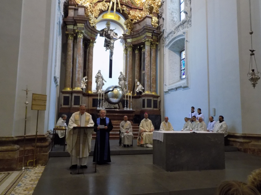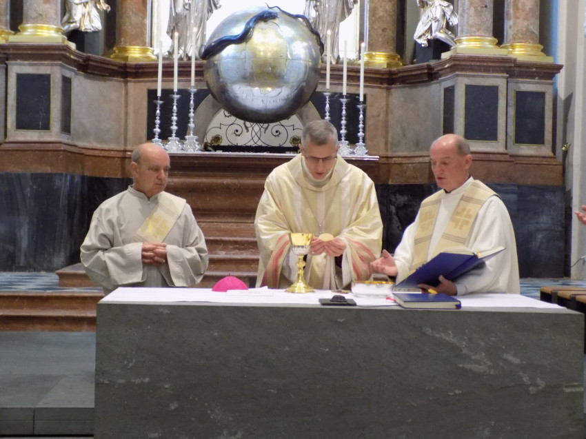 A zarándokokat a vendéglátók nevében Michael Staberl OSB prior köszöntötte: „Isten hozott benneteket Mariazellben. Szép, hogy éltetitek ezt a sok százados hagyományt. Eljöttetek Máriához, elhoztátok imáitokat, gondjaitokat, de a hálátokat is. A magyarok a 14. század óta járnak zarándokként Mariazellbe, 600 éve ez hozzátartozik a kegyhelyhez, itthon vagytok itt. Kívánom, hogy áldott emberekként térjetek haza, reményt és erőt merítve a közös imából és hálaadásból.”