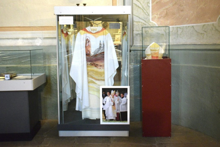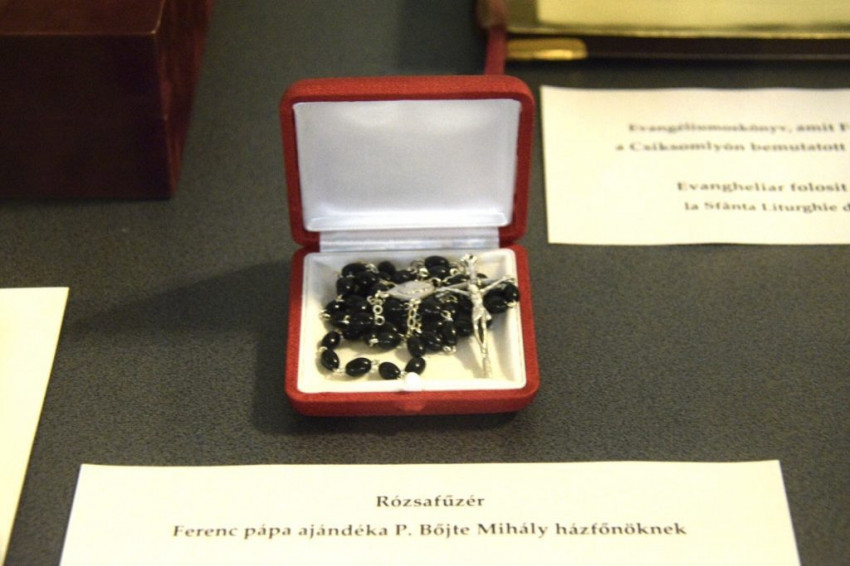 A kegytemplomban megrendezett kiállításon megtekinthetők azok a tárgyak, amelyeket Ferenc pápa a Csíksomlyón bemutatott szentmise alkalmával használt: a miseruha, a püspöksüveg, a papi szék, egy rózsafüzér, melyet ő ajándékozott Bőjte Mihály ferences házfőnöknek, valamint több emléktárgy és fotó.