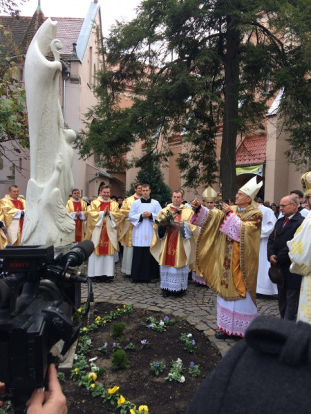 Ezután a jelenlévők kivonultak a székesegyház udvarára, ahol Majnek Antal megáldotta a nemrég felállított Szent Márton-szobrot. Majnek Antal köszönetet mondott Matl Péter szobrászművésznek a Szent Márton-szobor elkészítéséért. A szobor megáldása után beszédet mondott Latorcai Csaba kiemelt társadalmi ügyekért felelős helyettes államtitkár, aki hangsúlyozta: Magyarország támogatására számíthatnak a kárpátaljaiak. Latorcai Csaba örömének adott hangot, hogy támogathatták Szent Márton szobrának felállítását.