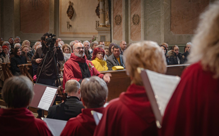 A kórus alapításának történetéről és a közösségben végzett szolgálat öröméről Bíró János kántor-karnagy, a kórus megalapítója osztotta meg gondolatait. ,,Amikor Csíksomlyóra kerültem, mindenképpen szerettem volna kórust alapítani, mert mindig szerettem az együtténeklés örömét, a többszólamúság szépségét. A ferences testvérek is bátorítottak ebben. Hirdetéseken, ismeretségek által toboroztuk az első tagokat. Már a kezdetekkor sokan lelkesedéssel csatlakoztak, és így, hála Istennek, megalakulhatott a kórus. Első fellépésünk advent első vasárnapján volt. Emlékezetes, bensőséges alkalom volt mindannyiunknak” – idézte fel a karnagy, aki azt is megjegyezte, az elmúlt években a kórus közösségét mindig a hit és a szolgálat tartotta össze. „Isten nélkül ezt nem lehet tenni. Mi csak az egy százalékunkat adjuk hozzá, a maradék kilencvenkilencet ő biztosítja. Szent Ágoston mondása – aki szépen énekel, kétszeresen imádkozik –, csak akkor igaz, ha tudatosan Istennek énekelünk: a szívből szóló ének lesz igazi ima” – hangsúlyozta Bíró János.