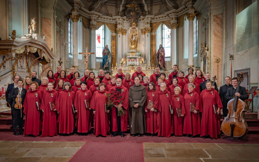 A jelenleg negyven tagot számláló kórust 2000-ben alapította Bíró János kántor-karnagy a ferences szerzetesek kezdeményezésére. Az énekkar azóta is hűen szolgálja küldetését: énekével nemcsak a liturgiát teszi ünnepélyesebbé, hanem közösséggé is formálja az éneklőket. A negyedszázados jubileum vasárnap alkalmat adott a hálaadásra és az öröm megosztására. A kórus tagjai hálaadó hangversennyel fordultak a jóistenhez, és kórusművekkel örvendeztették meg mindazokat, akik velük együtt ünnepeltek.