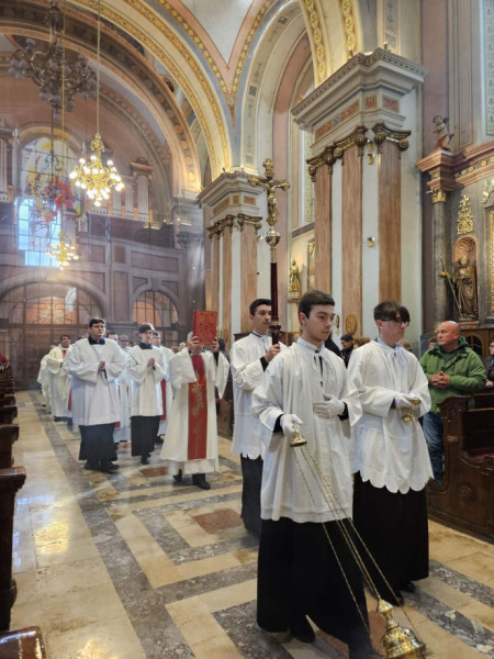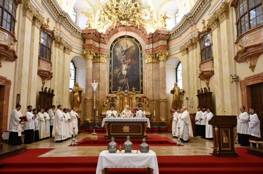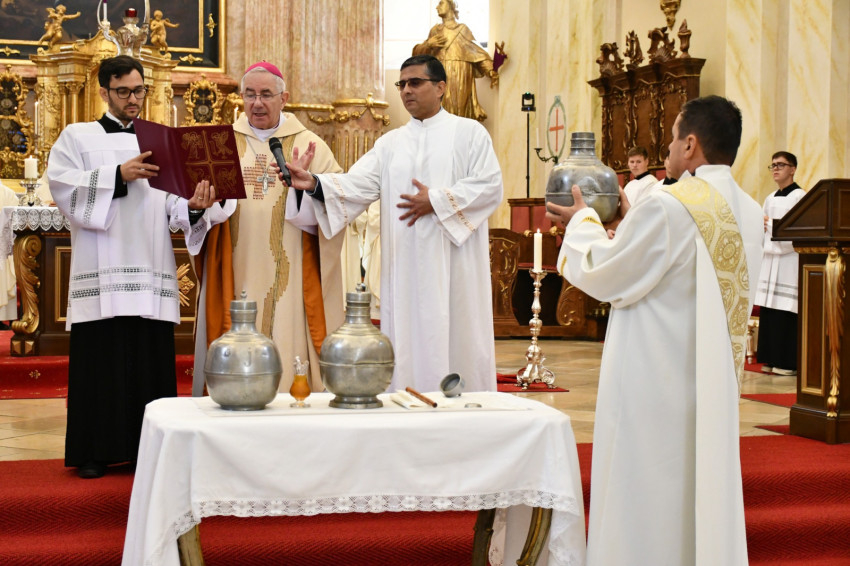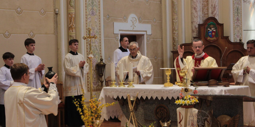 A temesvári Szent György római katolikus székesegyházban nagycsütörtökön, április 2-án, délelőtt 10 órakor Pál József Csaba megyéspüspök mutatta be az olajszentelési misét. A szentmisén jelen volt a Gerhardinum Római Katolikus Teológiai Líceum növendékeinek népes csoportja és több tanára.