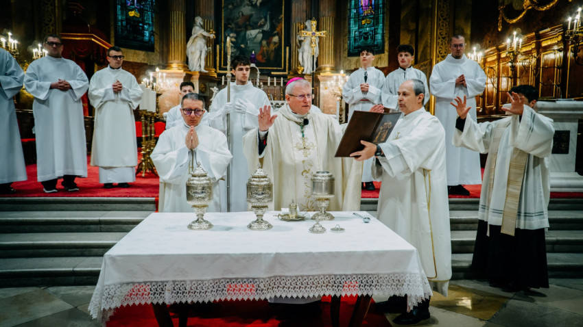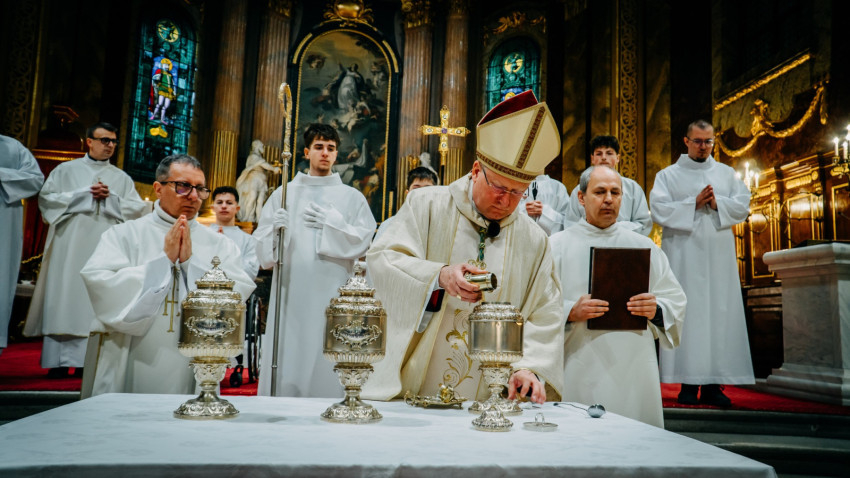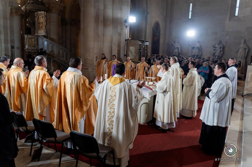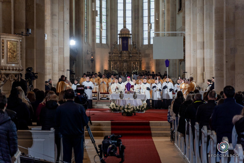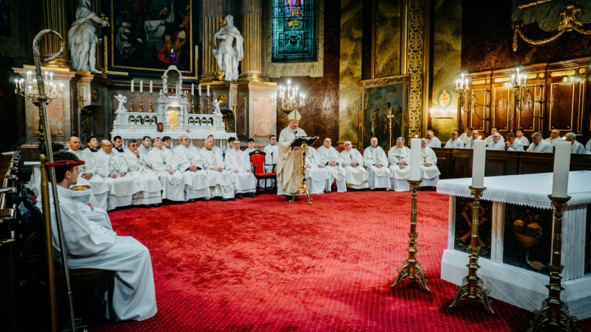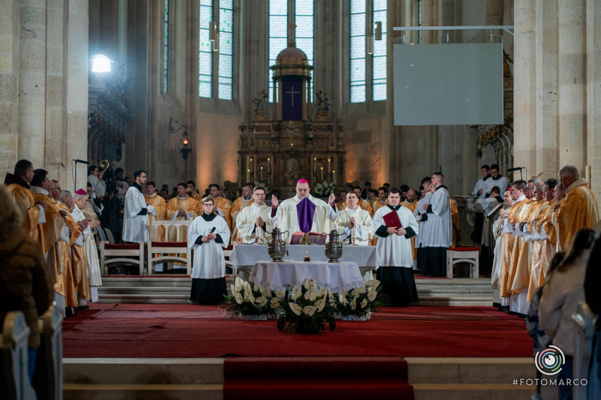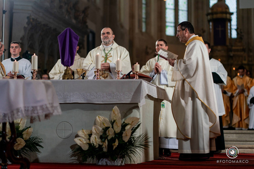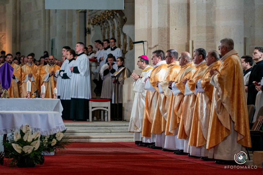 Homíliájában a főpásztor hangsúlyozta: „Mielőtt belépünk a húsvéti szent háromnapba, különösen is egyesülünk Krisztusban. Tudatosítjuk, Ki hívott meg bennünket, és Kinek a szeretetéért indultunk el a papság vagy a diakonátus útján. Ő az, aki nélkül ma sem lenne értelme életünknek, erőfeszítéseinknek és munkánknak. Ő az, aki cselekszik általunk. Mégis, küzdelem zajlik bennünk: hogyan és milyen módon engedjük, hogy Ő cselekedjék általunk. Például amikor prédikálunk: hogyan tegyük, hogy Ő legyen az, aki szól? Hogy azt mondjuk, amit Ő akar mondani abban a helyzetben. Az Evangéliumban olvassuk, hogy Jézus kettesével küldte tanítványait maga előtt oda, ahova menni készült. Ma is így történik. Nem mi vagyunk azok, akik megoldjuk az emberek vagy a társadalom problémáit – nem is lennénk rá képesek. Mi csak Jézus előtt megyünk, de nem az Ő segítsége nélkül.
