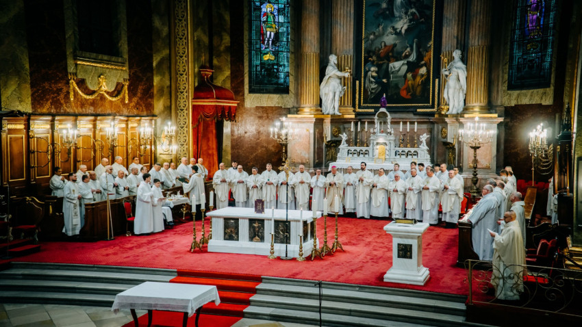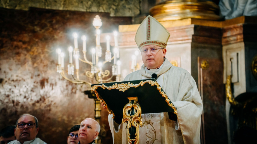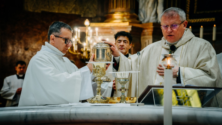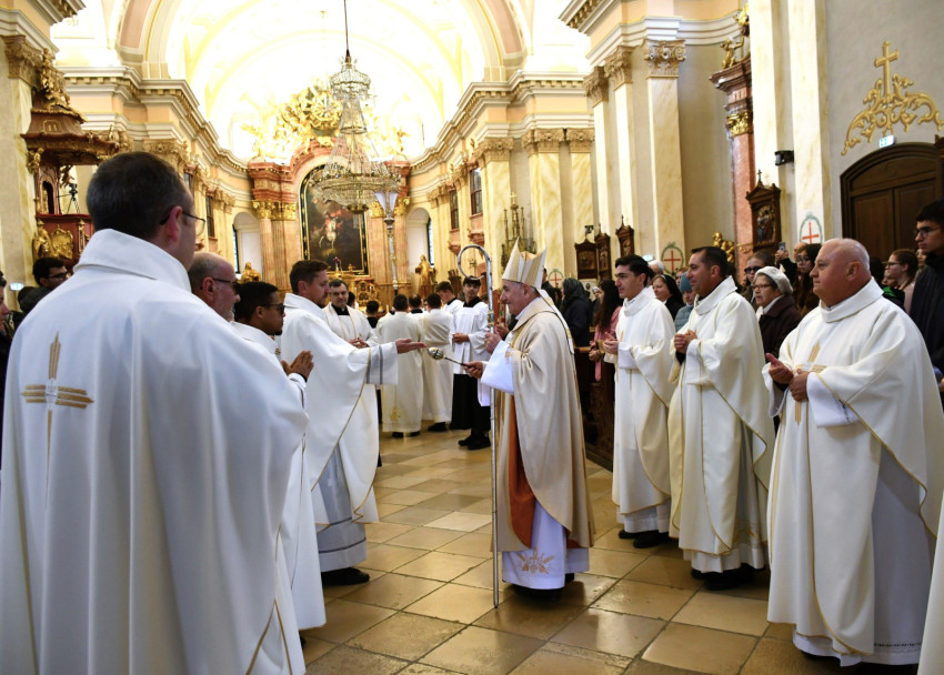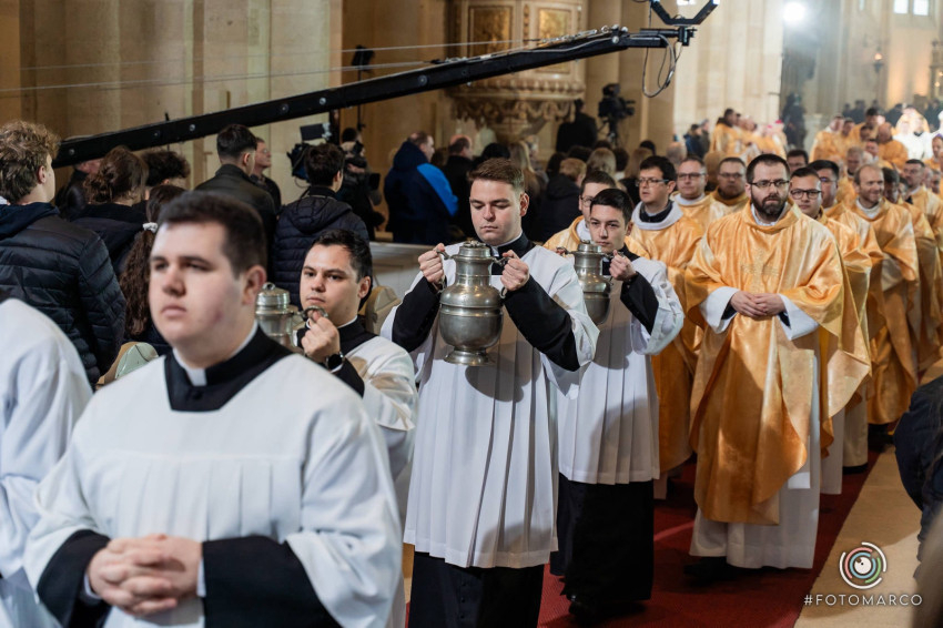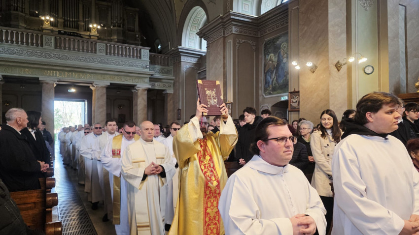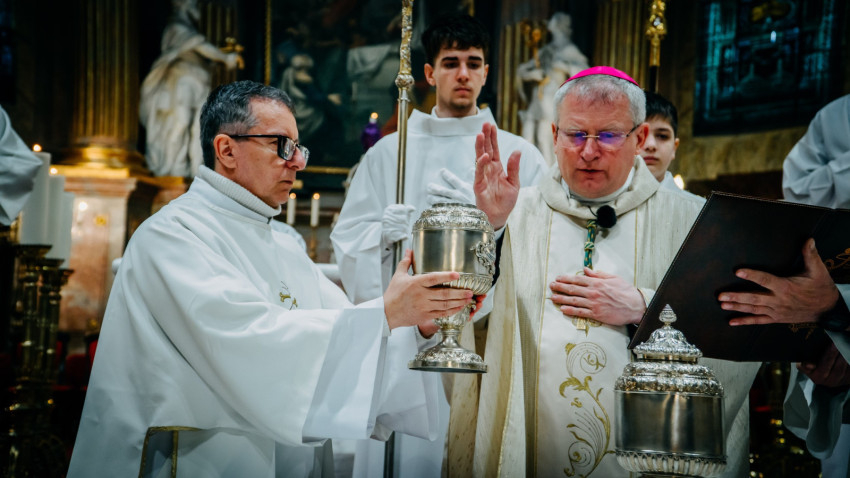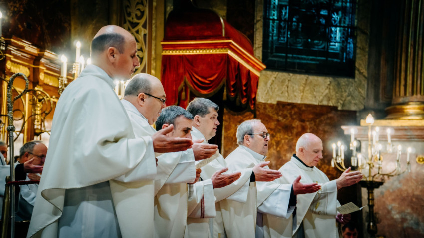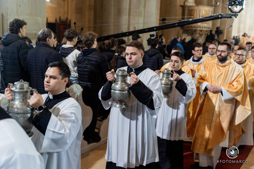 Homíliájában a főpásztor hangsúlyozta: „Mielőtt belépünk a húsvéti szent háromnapba, különösen is egyesülünk Krisztusban. Tudatosítjuk, Ki hívott meg bennünket, és Kinek a szeretetéért indultunk el a papság vagy a diakonátus útján. Ő az, aki nélkül ma sem lenne értelme életünknek, erőfeszítéseinknek és munkánknak. Ő az, aki cselekszik általunk. Mégis, küzdelem zajlik bennünk: hogyan és milyen módon engedjük, hogy Ő cselekedjék általunk. Például amikor prédikálunk: hogyan tegyük, hogy Ő legyen az, aki szól? Hogy azt mondjuk, amit Ő akar mondani abban a helyzetben. Az Evangéliumban olvassuk, hogy Jézus kettesével küldte tanítványait maga előtt oda, ahova menni készült. Ma is így történik. Nem mi vagyunk azok, akik megoldjuk az emberek vagy a társadalom problémáit – nem is lennénk rá képesek. Mi csak Jézus előtt megyünk, de nem az Ő segítsége nélkül.