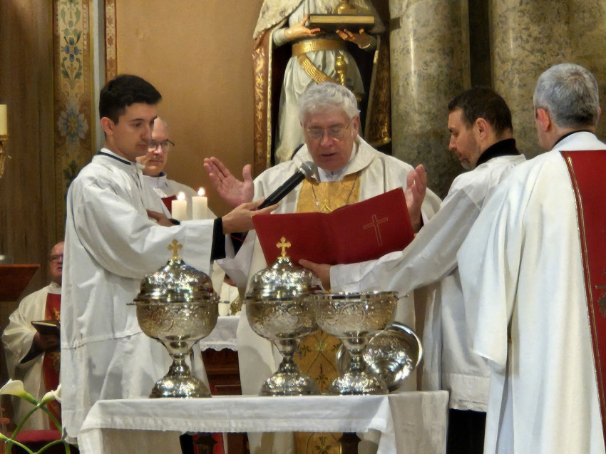 Olajszentelési szentmisét mutatott be a nagybecskereki Nepomuki Szent János-székesegyházban Mirko Štefković megyéspüspök. A szentmise különleges alkalom arra, hogy láthatóvá váljon a püspök és a papság közössége, amely – ahogyan a megyéspüspök is hangsúlyozta – egész éven át jelen van szolgálatukban és életükben. A papok ezen a napon megújították szenteléskor tett ígéreteiket, megerősítve elkötelezettségüket Krisztus és az Egyház szolgálatában. „Nagy öröm számomra megtapasztalni, hogy ez az egység nemcsak ezen az alkalmon válik láthatóvá, hanem egész éven át jelen van életünk különböző területein és helyzeteiben.”
