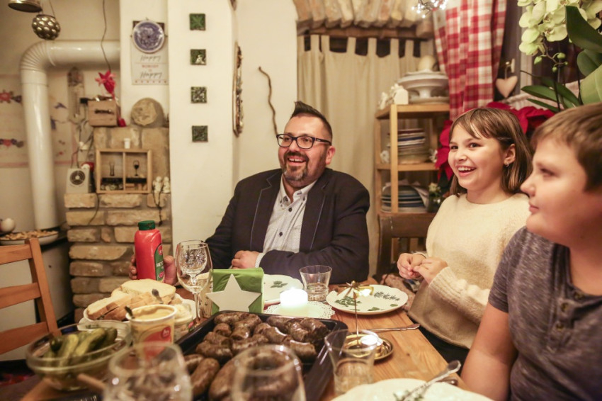 Karácsonykor mindenki együtt van, ilyenkor szünetel a munka. Az adventben Laci kültéri betlehemet készít a városnak, szentestére pedig a templomot is kidíszíti. Karácsonykor harmincnyolc fát díszít fel, de ezt egyáltalán nem bánja, és „nem múlik el az öröm, hogy a család együtt díszíti fel a karácsonyfát”. Csak 23-án délelőttig vállal munkát, mert utána már otthon kezdik el ünneplőbe öltöztetni a mézeskalácsház minden kis zugát. 24-én a gyerekek szerepelnek a pásztorjátékban, azután otthon közösen díszítik fel a fát. Tamás atyát mindig meghívják szentestére. Amikor volt mellette másik pap, két mise között ő is náluk töltötte az ünnepet. Az ajándékozás, beszélgetés, társasjátékozás után az újonnan kapott ruhákban mennek az éjféli misére, ahogyan a nagymama tanította gyerekkorukban. És a varázsló reméli, hogy a karácsonyi öröm beköltözik minden házba, ahol dekorációival segítette a várakozást. Ez már rajtunk múlik, azon, hogy előkészítettük-e szívünket is.