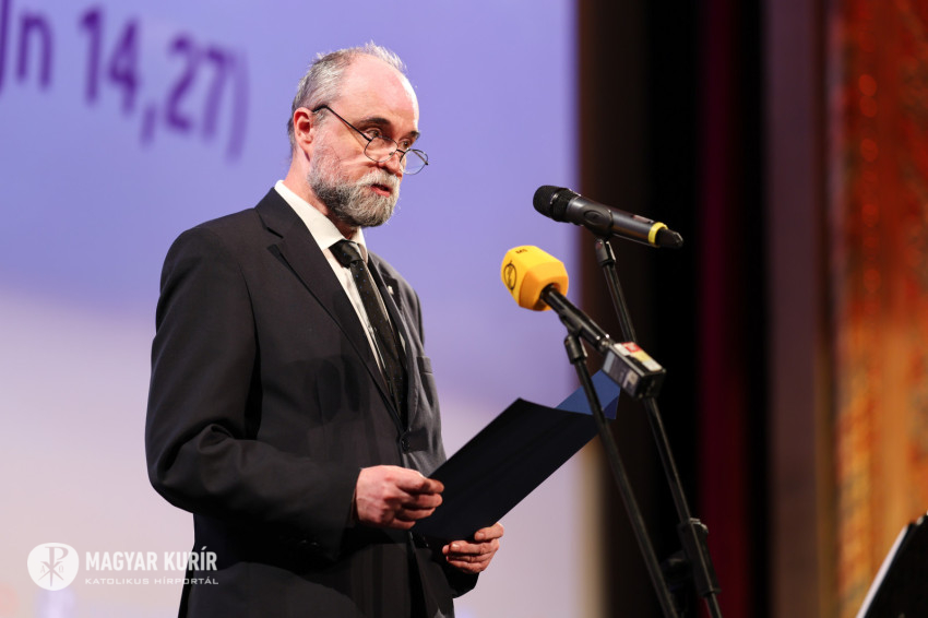 Fábry Kornél esztergom-budapesti segédpüspök ünnepi beszédében idézte a rendezvény mottóját – „Békességet hagyok rátok!” – és kifejtette: három kapcsolaton múlik, hogy van-e béke a világunkban, vagy nincs. Az első a saját magunkkal való kapcsolat: békességben vagyunk-e önmagunkkal? Jaj annak, akit én úgy szeretek, mint magamat! – idézett egy tizenhét éves lányt a püspök, elismerve: nem is olyan könnyű magunkat szeretni, de az önszeretet helyes módja az alázat, ez pedig a valósággal való harmónia. Tisztában vagyok az erényeimmel, gyengeségeimmel, és így szeretem azt az embert, akinek Isten megalkotott, és persze egy életen át törekszem önmagam jobbításán. Meg kell találnom azt a szerepet, amelyre Isten kiválasztott, és azt mindvégig játszani.