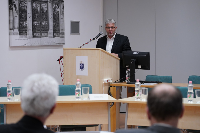 Kuminetz Géza rektor Prohászka Lajos A mai élet erkölcse című, nemrégiben újra megjelent munkáját ismertette, úgy is mint a kötet bevezetőjének szerzője. Prohászka ebben a munkájában az erkölcsi tudat alakulását és egyre erőteljesebb torzulását mutatja be, amely torzulás „az elmúlt évtizedekben tovább erősödött”.