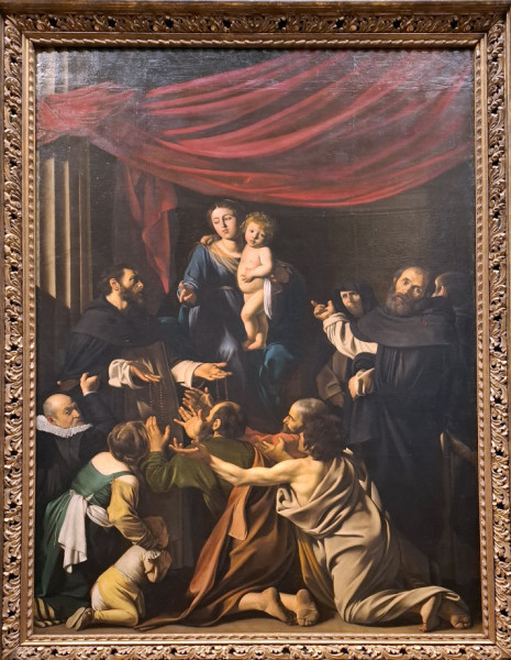 A következő teremben a művészettörténet egyik legnagyobb alakja, Caravaggio (1571–1610) remekművei fogadják a lelkes látogatót. Az egyik festmény a Rózsafüzéres Madonna (1603), amelyen a Szűzanya felszólítja Szent Domonkost, hogy osszon rózsafüzért a népnek. Jobboldalt Szent Péter a gyermek Krisztusra mutat mint minden kegyelem forrására. A képet Caravaggio Rómában festette, 1620-ban az antwerpeni domonkos templomba került, majd 1781-ben a császári képtár megvásárolta.