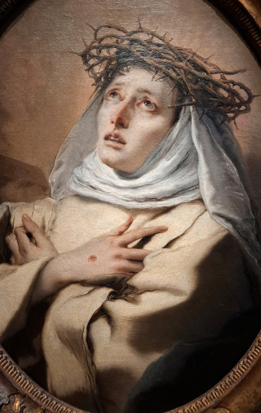 Mindenképpen érdemes megnézni Giambattista Tiepolo Sienai Szent Katalin (1746) című képét is. A remekbe szabott alkotás oltárképnek készült, a padovai Santa Giustina-kolostor számára festette a mester. A szuggesztív képen Katalin elragadtatása látható, töviskoronája és a kezén lévő stigmák a Krisztussal való misztikus egyesülés bizonyítékai. A kép ovális keretben látható, finom, pasztelles, okker színei csak fokozzák a hatását. Az áhítatos kép célja az volt, hogy a nézőt meditációra késztesse.