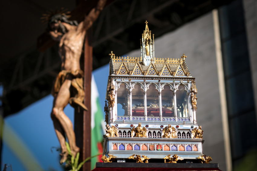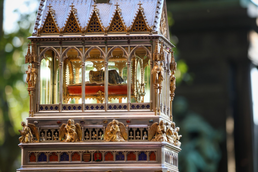 Az ereklyét augusztus 20-án délután adták át neki az Amerikai Misszió képviselői az angolkisasszonyok Váci utcai zárdájában, onnan hozták át a belvárosi ferencesekhez, ahonnan rövid imádság után, ünnepélyes körmenetben a bazilikához vitték. Az eseményt a következőképpen örökítette meg a ferences kolostor Historia Domusának jegyzője.