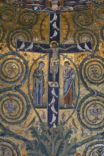 Mit ábrázol tehát a mozaik? Az egész üdvtörténetet, a középpontban Isten Fia megtestesülésével és megváltó áldozatával a kereszten.