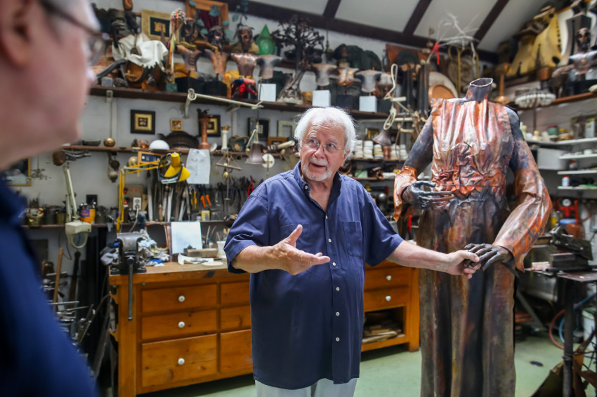 – Minden opusnak megvan a keletkezéstörténete, véletlenül nem történik semmi, de legtöbbször csak később jön rá az ember, hogy nincsenek véletlenek. 2015-öt írunk. A veszprémi Boldog Gizella Főegyházmegyei Gyűjtemény igazgatója, Udvarhelyi Erzsébet meghívott, hogy vigyem el a munkáimat a várbeli piarista templomba egy kiállításra. A tárlatot Márfi Gyula érsek és Korzenszky Richárd bencés, tihanyi perjel nyitotta meg a múzeum igazgatónője kíséretében, igen szép beszédekkel. Szobraim, képszobraim voltak kiállítva. Nagy Károly apát, kanonok, a templom plébánosa nem tudott jelen lenni a megnyitón, de egy közös barátunkkal üzent, hogy örömére szolgálna, ha meglátogatnám. Amikor találkoztunk, már az első percben úgy éreztem, kölcsönös rokonszenv alakult ki közöttünk. „Arra gondoltam, személyesen kérdezlek meg, elvállalnád-e Szent Mihály arkangyal szoborkompozíciójának megtervezését és kivitelezését” – mondta. Majdnem földbe gyökerezett a lábam, örömteli bizsergés hatott át a fejem tetejétől a lábam ujjáig. „Megnéztem a szobraidat a kiállításodon – folytatta –, tetszésemre voltak, s tíz éve dédelgetett tervem, hogy Veszprém főterére megalkottassak egy Szent Mihály-szobrot. Úgy gondoltam, eljött az, akire ezt rábízhatom, ha vállalod.” Hallatlan megtiszteltetésnek éreztem a felkérését, és most, hogy beszélgetünk róla, újra átélem azokat a perceket.