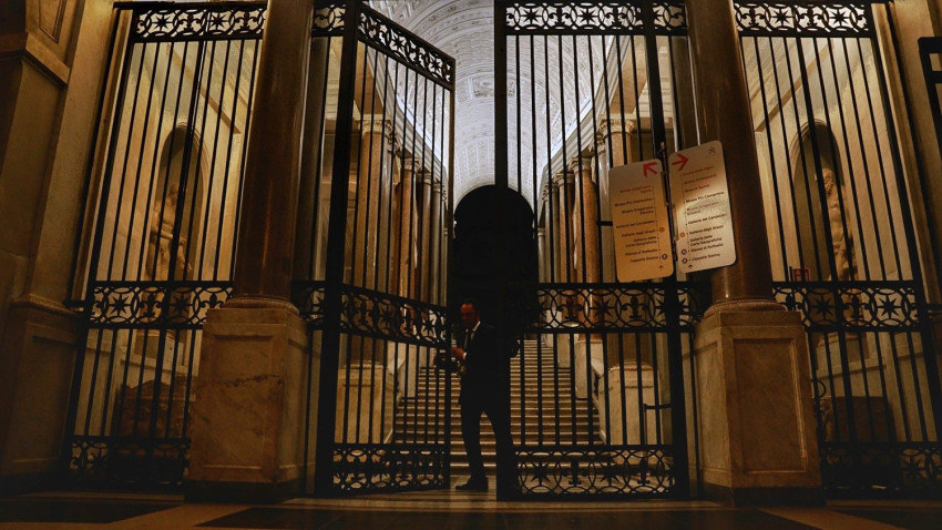 Hajnalban megkezdi a kulcsár magányos körútját, amelyet majd visszafele is megtesz napnyugtakor. Egymás után nyitja az ötszáz ajtót és ablakot a pápai gyűjteményekben; közel egy órába telik, amíg végighalad ötszáz év történelmén. Kinyitja és kitárja a Pio–Clementino Múzeumhoz vezető kaput is. Áthalad a vatikáni gyűjtemény legkorábbi magján, majd a könyvtáron, és elér a Raffaello termekbe. Ismeri a Vatikáni Múzeum minden titkát, például a kezdetleges földrengésjelzőt is, amely a Francesco Podesti által festett Szeplőtelen Fogantatás termének a falán rejtőzik.