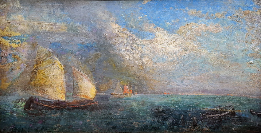 A Brown-gyűjteményben van egy rendkívüli kép: Odilon Redon Velencei hajók című alkotása. Sem a témaválasztás, sem az ábrázolás módja nem jellemző a híres szimbolista festőre, aki leginkább rejtélyes, mitikus és bizarr alakokkal teli látomásairól ismert. Ez a képe teljesen más. 1908 áprilisában festette, Velencében tett látogatása után. A lagúna meleg esti fényben fürdik. A zavaros víz felett tisztulni látszik ég, a felhőfoszlányokon keresztül azúrkék színben ragyog. A kép előterében tengeri szellő feszíti a kétárbócos hajó vitorláit, míg a távolban a csónakokat és a partot vörös fénybe vonja a lenyugvó nap. A festő nézőpontja nem világos, talán maga is egy halászhajón volt, vagy a lagúna számos kis szigetének egyikén.