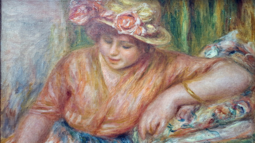 S akkor egyszer csak elérkezünk Renoir festményeihez. Egyszerűen lenyűgözőek. Színeik, mint a szivárvány, varázslatosak, gyöngyházfényűek. A mester ragyogó alkotásai senki másnak a műveivel nem téveszthetők össze. Nem csoda, hogy a műgyűjtő házaspár is beleszeretett a képeibe. Az olvasó nő című festményről csak úgy sugárzik az életöröm. Egyetlen sötét tónus vagy szín sincs a képen. Látszik, hogy Renoir örömében festett, a boldogság egyfajta megnyilvánulását láthatta az alkotásban. A kiállításon bemutatott portréi azonban nemcsak színeikkel ragadják meg a nézőt, a festő jellemábrázoló képességéről is tanúságot tesznek. A Lányportré világoskék háttér előtt című képén is leheletfinom színekkel, finom érzékkel festi meg modelljét.