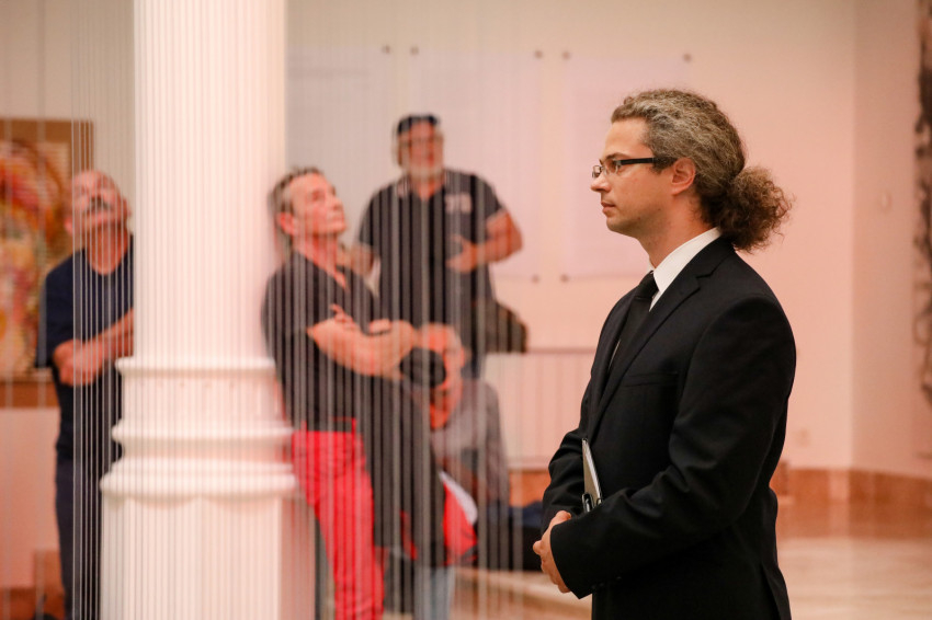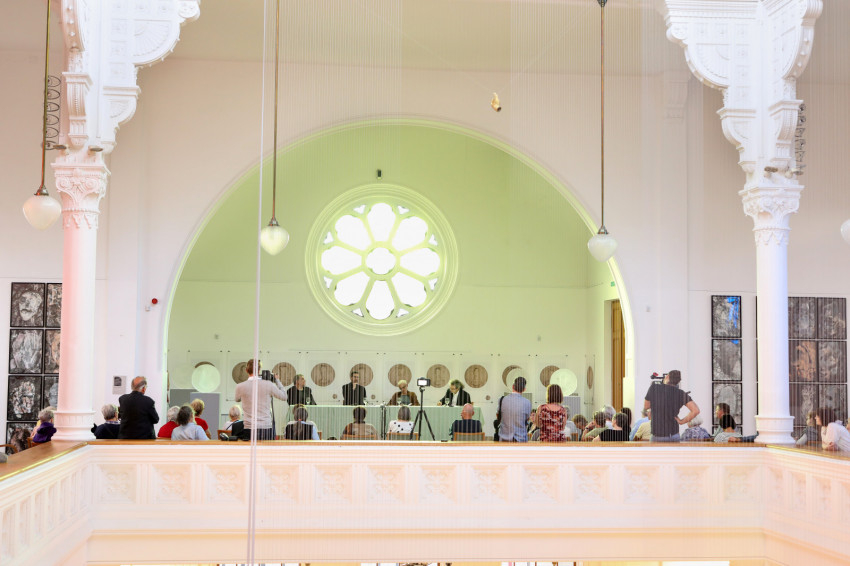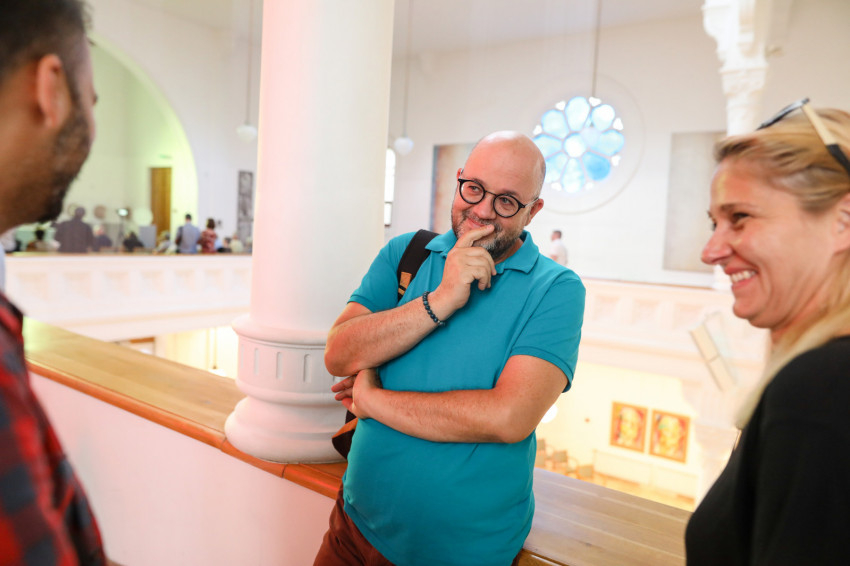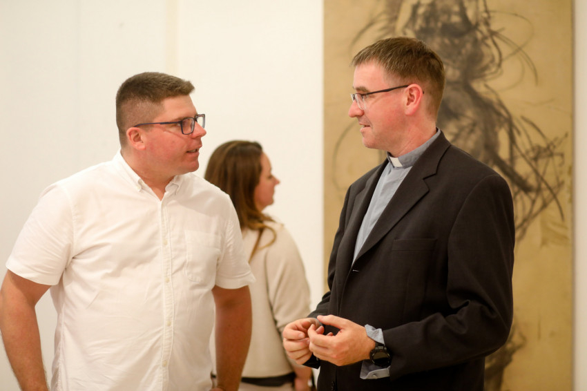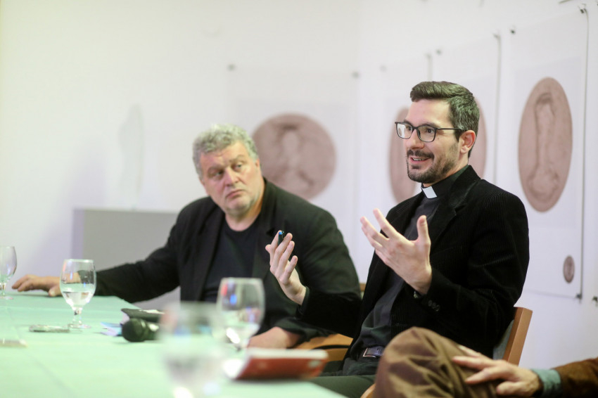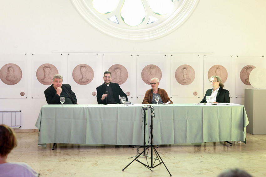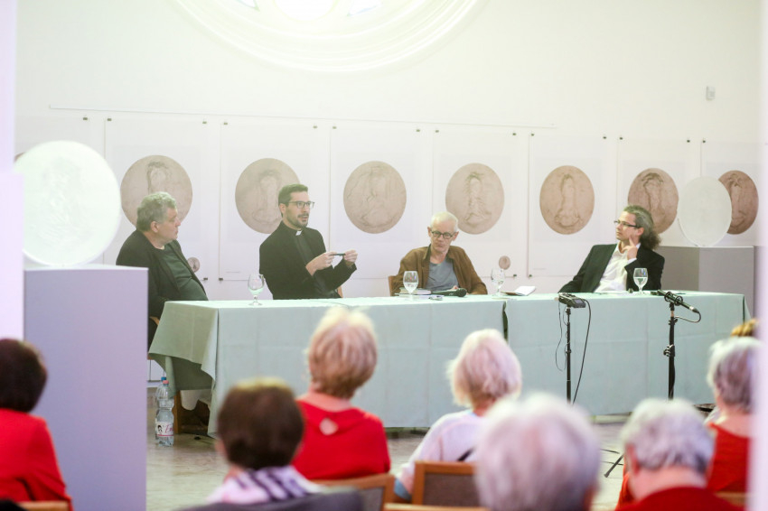 A megnyitót beszélgetés követte. Az Asztali Beszélgetések Kulturális Alapítvány több mint egy évtizede ültet egy asztalhoz különböző felekezetekhez tartozó gondolkodókat. Az „Asztali beszélgetések” témája ezúttal az egyház és a szakrális művészet jövője volt. Galambos Ádám evangélikus teológus, a sorozat ötletgazdája kérdezte Gájer László katolikus teológust, Tillmann József filozófust és Bukta Norbert képzőművészt.
