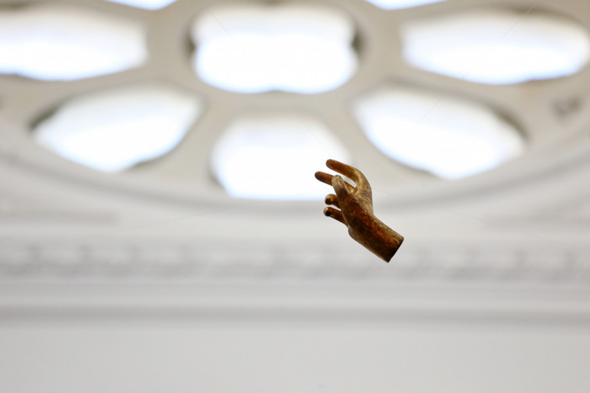 A kiállítás koncepcióját Képiró Ágnes művészettörténész mutatta be. „A kiállítás az égi-földi relációra fókuszál, melyet metaforikusan az installáció köt össze. A földszinti és emeleti falakon láthatók az alkotások. Az alsó szint festészeti munkái az egyén belső tapasztalásának szintjére utalnak. A felső szint fotói, plasztikái és freskói az emberen kívüli térre helyezik a hangsúlyt, arra a szférára, mely minket »vesz észre«. Az aranykéz – Kotormán Norbert szobrászművész munkája – az isteni jelenlétre emlékeztet. Az ablakok színes fóliái az összetett fényszínekre, a fehérre utalnak. Ezek a színes fények összeadódásukban jelzik az Eucharisztia lényegét: az átváltozásnak bennünk kell megvalósulnia.”