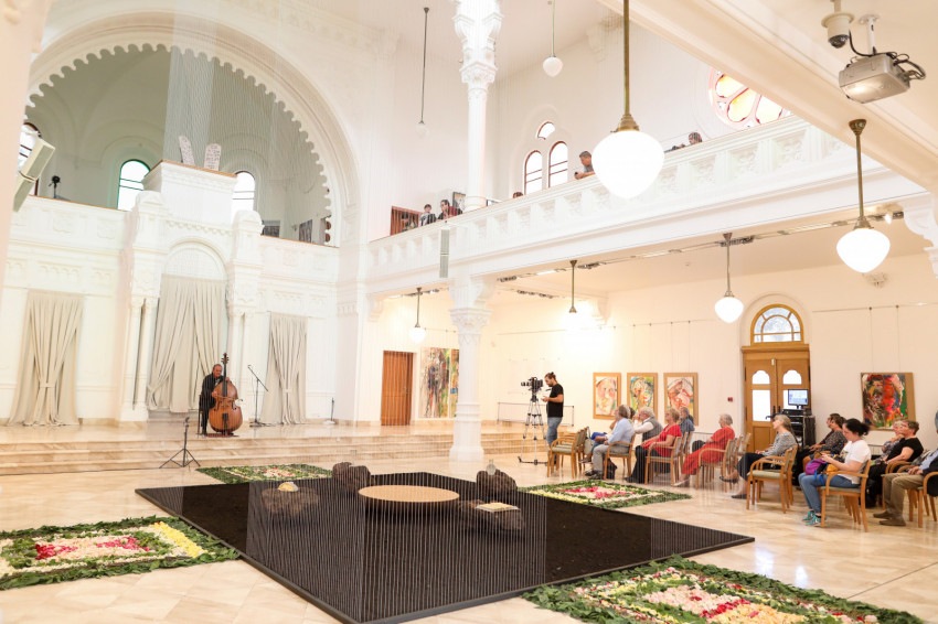 Horváth László, a Damjanich János Múzeum igazgatója köszöntője után nyílt meg a kapu, és ahogy egykor a zsinagógába imára érkezők, mi is „Áhítattal léptünk szent hajlékodba!”. Az épület központi eleme, a nyolcszögletű kupola alatti imatérben performansz várta a közönséget.