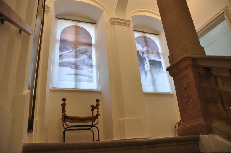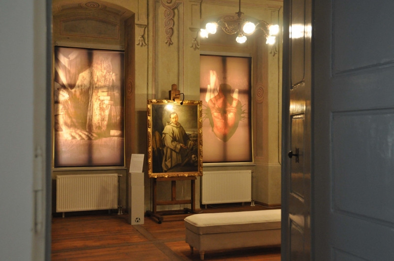 Leglátványosabb darabjai ennek a kombinációnak a gyűjtemény ablakaiban elhelyezett keresztútképek, amelyek hátulról megvilágítva különleges atmoszférát teremtenek a 18. századi barokk-rokokó belső térben.