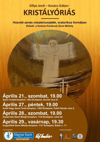 – A bemutatóval kapcsolatban érdekességként emlékeztetnék arra, hogy a nyolcvanas években tudomásom szerint Jenőék a Szondi utcai Szent Család-templomban mutatták be utoljára az eredeti darabot. Most ugyanitt lesz az első előadás, április 21-én este. Április 27-én, 28-án és 29-én a terézvárosi Szent Teréz-, a Lehel téri Szent Margit- és a Babér utcai Szent Mihály-templomban mutatjuk be a darabot.
