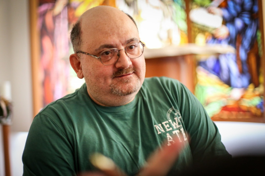 – Jenő tavaly májusban volt hetven esztendős, nem sokkal előtte mutattuk be a Perzsa oratóriumot. Az életműve rendkívül jelentős, és bár ma is folyamatosan ír új dalokat, korábbi művei között is sok olyan van, amely minden korban időszerű mondanivalót hordoz. Ilyen a Kristályóriás is. Az 1980-as években megjelent hanglemezen, de az nem a teljes mű volt, csak egy negyven perces összeállítás, nyilván azért, mert a nagylemez formátum ezt tette lehetővé. Ugyanakkor korabeli amatőr felvételeken megvan a teljes darab, és így rekonstruálni lehetett az eredetit. Ez egy misztériumjáték, amit oratorikusan fogunk előadni, a teljes szövegkönyv alapján. A darab Jézus temetésével kezdődik, egy szép, fájdalmas temetési könyörgéssel, majd a Krisztushoz tartozó tanítványok, asszonyok közül jelenik meg egy-egy alak, így a kenetet hozó Mária Magdolna, akivel a feltámadt Jézus majd a sírnál fog találkozni húsvét hajnalán, valamint Tamás apostol. Ők jelenítik meg a Krisztushoz tartozó emberek fájdalmát, reménytelenségét, tanácstalanságát a keresztre feszítés utáni tragikus helyzetben. Az ezt követő hosszabb rész szinte teljesen lemaradt a lemezről: bevillanó képsorok jelennek meg itt arról, hogyan emlékeznek a tanítványok Krisztus szavaira, miként tanította őket az imádságra, kik az ő rokonai, mit jelent a követése, az Atyával való kapcsolata, az, hogy ő az Atya képmása. Evangéliumi történetek elevenednek meg például a gazdag ifjúról és a gazdagság veszélyeiről. Az idősíkok, a jelen és a múlt folyamatosan váltakoznak, ami az én értelmezésem szerint azt érzékelteti, miként próbálják feldolgozni a tanítványok a gyászidőt, és megérteni, mit jelent Krisztushoz tartozni, mi volt a tanításának a lényege. Ezek a részek prózai jelenetek, illetve hozzájuk kapcsolódó dalbetétek a darab első részében. Újdonságot jelentenek azok számára, akik csak a korábban lemezen megjelent, vágott változatot ismerik. Kissé zeneileg is áthangszereltük, modernizáltuk a darabot.