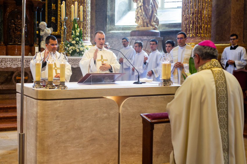 „Isten tegye teljessé a jót, amit megkezdett benned” – hangzik el a mondat a papszentelés szertartásában. Június 15-én szentelte áldozópappá Ézsöl Krisztiánt és Horváth Csabát, a Győri Egyházmegye két diakónusát a megyéspüspök. Az ünnepi alkalmat megelőző napon Veres András útravaló gondolatai mellett a két fiatal beszélt Krisztus-követővé válásáról.