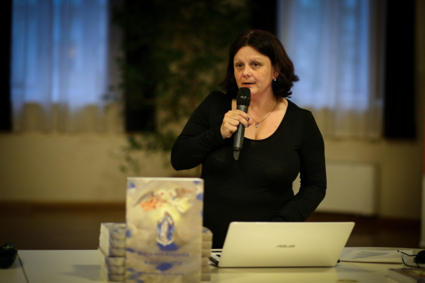 Lakatos Adél, a Kalocsai Főgegyházmegyei Levéltár munkatársa a kötet művészettörténeti anyagáról adott tájékoztatást. Az enciklopédia összeállításakor felkeresték az adatközlő településeket, hogy képekkel illusztrálva teljes áttekintést adjanak a Mária-tiszteletről. Ez a terepbejárás a múlt és jelen közti kapcsolat lehetőségét is jelentette. Az előadó korszakok, művészeti ágak és alkotók szerint mutatta be a gazdag anyagot. A művészettörténész arra mutatott rá, a Mária-tisztelet hangsúlyos szerepe révén remek modell, hogy megértsük a kor művészeti folyamatait.