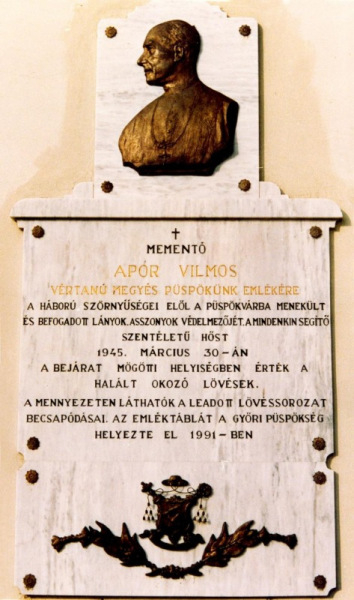 1945. március 28-án, nagyszerdán az oroszok elérték Győrt. A visszavonuló németek szintén lőtték a várost. Találatot kapott a székesegyház is. Apor püspök végignézte a pusztítást és megsiratta templomát.